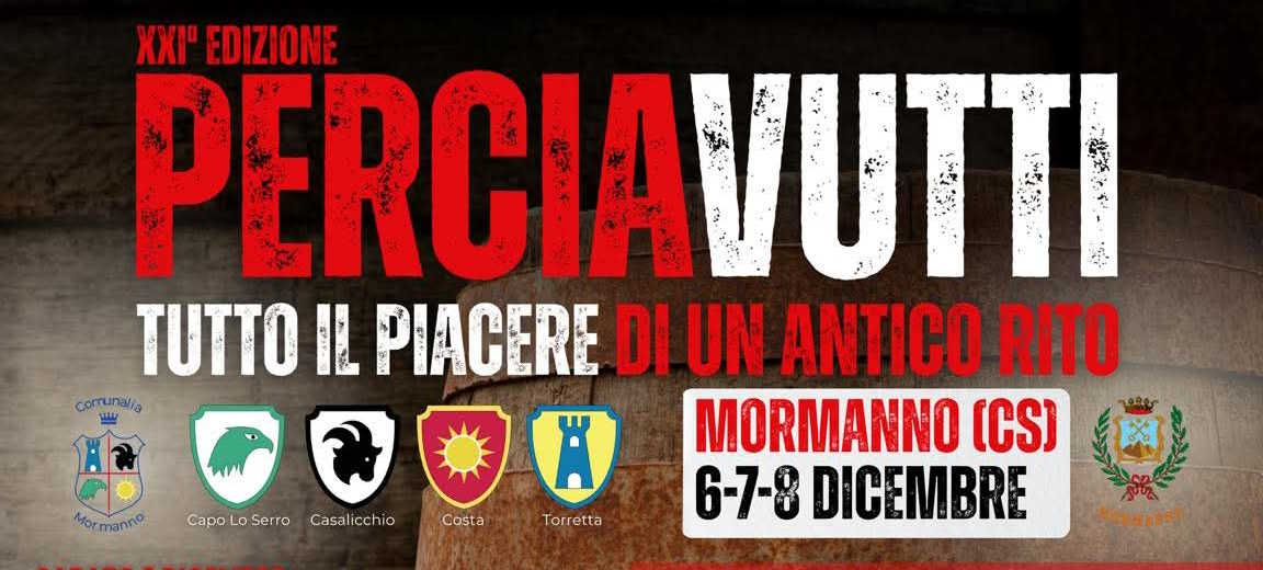 Dal 6 all’8 dicembre, tra vino, gastronomia e cultura di comunità MORMANNO -Manca poco più di 15 giorni alla data del 7 dicembre che scandisce l’evento “Perciavutti”, ovvero la spillatura del vino nuovo dalle botti che caratterizza la manifestazione identitaria…